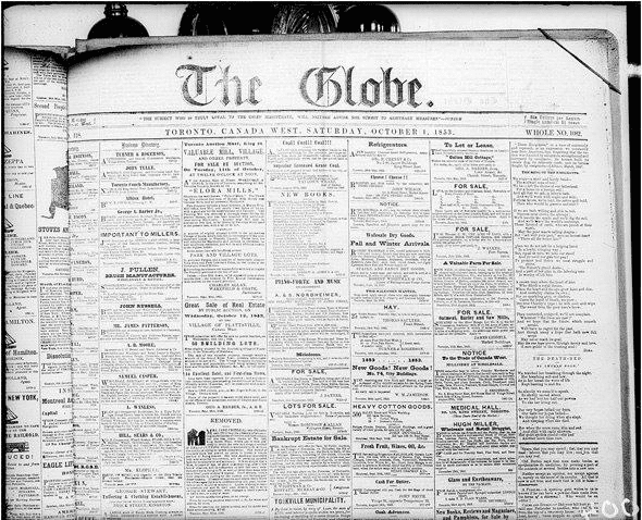 The Globe був заснований у 1844 році Джорджем Брауном після того, як він отримав фінансування від групи реформаторів. Браун був кмітливим підприємцем і використав нову технологію друку якнайкраще. Він володів першою сучасною друкарнею в Онтаріо і до 1860 року щодня випускав 3000 примірників своєї газети. Він використовував Telegraphs, що прибули через Атлантику, щоб повідомити про міжнародні історії та надати своїй газеті вишуканості. Його політика наголошувала на відокремленні церкви від держави, і була попередником сучасної ліберальної партії. Але, незважаючи на свою ліву схильність і міжнародне охоплення, йому вдалося звернути увагу на масовий ринок і подолати прірву між сільською та міською людиною.