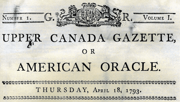 Першою такою газетою стала The Upper Canada Gazette, що друкувалася протягом 1798-1849 років. Випускали її у Верхній Канаді, але ціль кожного видання була не такою, як зараз. В опублікованому розпорядженні Джона Грейвза Сімко, першого лейтенанта-губернатора регіону, йшлося про те, що основним повноваженням був друк рішень та дій уряду, що надавало йому «напівофіційний статус». Незважаючи на те, що The Upper Canada Gazette випускали щотижня, вона також була відомою завдяки прогалинам у публікаціях та технічним помилкам. Крім того, у 1813-1814 роках, під час американської окупації Торонто, сталася перерва. Видавництво на деякий час припинило роботу.